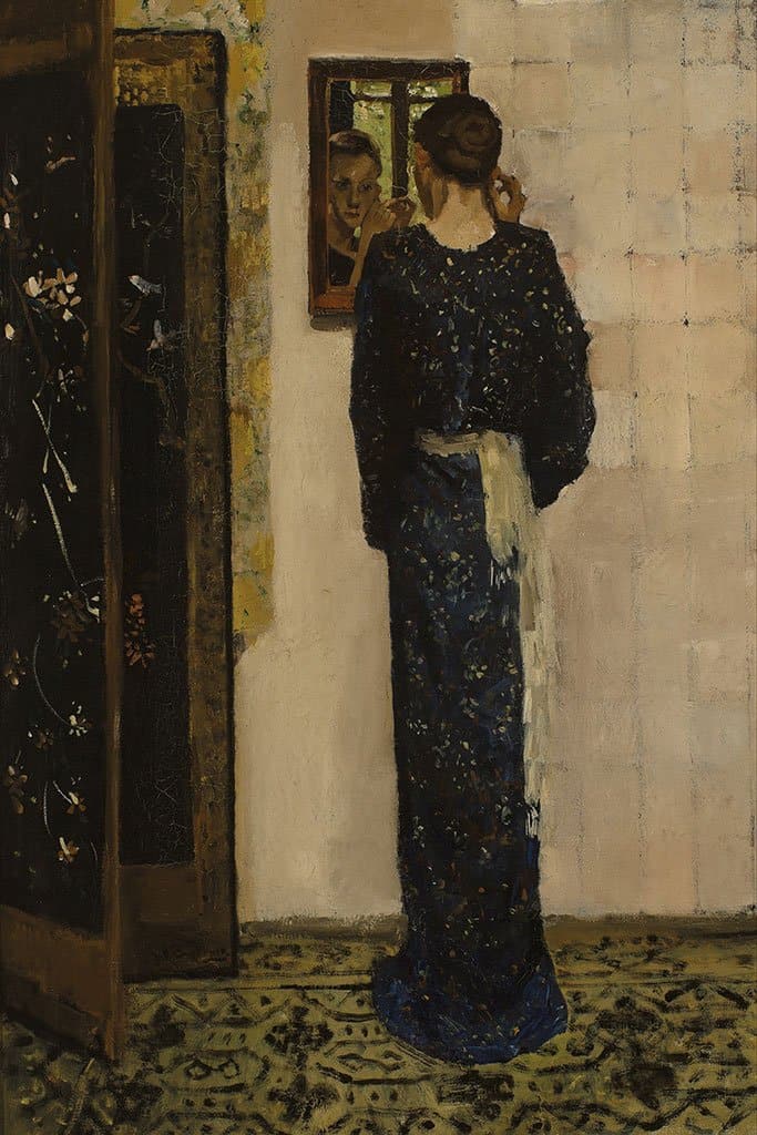 | Titel: | 'Het Oorringetje', 'De Oorbel', 'Jonge vrouw in kimono bij de spiegel' |