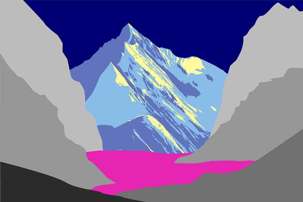 Pop art landschap paars met bergen XI