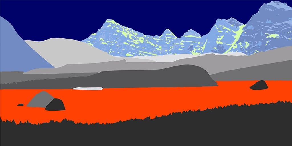 Onze stof is gemaakt van een elastisch polyester. Vanwege zijn krachtige kleuren, fijne structuur en matte uitstraling zijn we erg van deze stof gecharmeerd. Het doek absorbeert licht in plaats van dit te weerkaatsen. Zo komen de haarscherpe prints tot leven.