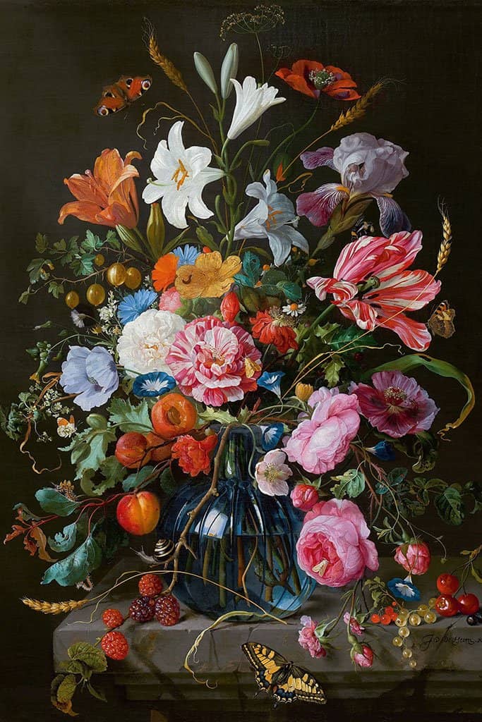 De Heem schilderde veel stillevens met een kleurrijke collectie bloemen. Dit schilderij komt uit de Rothschild collectie en is eigendom van de National Gallery of Art.