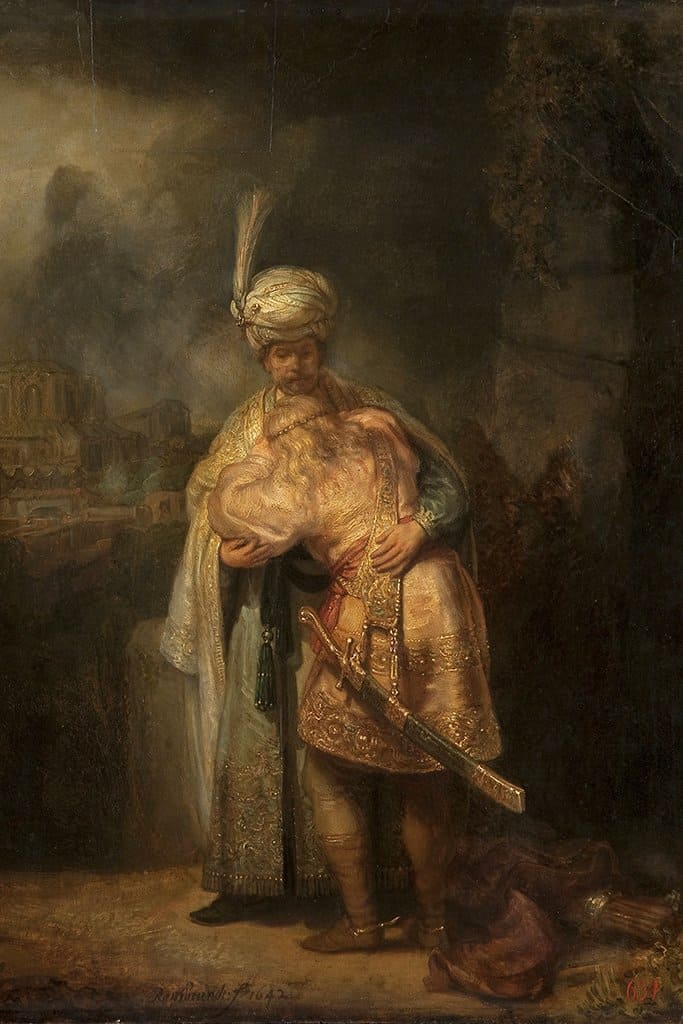 Rembrandt van Rijn is een van de grootste kunstenaars aller tijden en geprezen om zijn overtuigende voorstellingen van de menselijke conditie. Bekend om zijn portretten en landschappen, bleef Rembrandt zijn hele leven geïnteresseerd in de geschiedenis en de bijbelse schilderkunst. "David's afscheid van Jonathan' is zo'n schilderij.