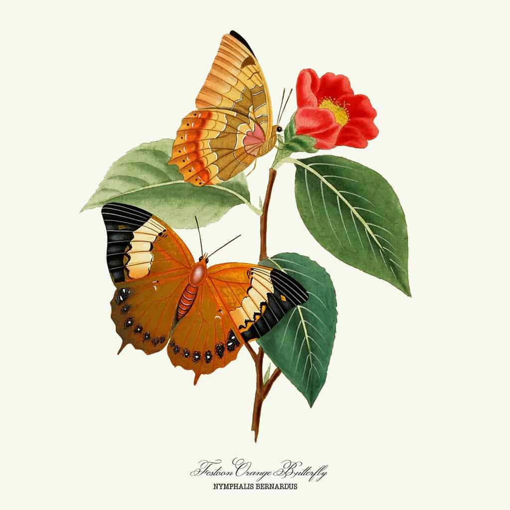 Dit is bord 34 uit het boek "Natural History of the Insects of China" en toont de oranje vlinder (Nymphalis Bernardus) van Edward Donovan, een Ierse amateur-zooloog, reiziger en schrijver.