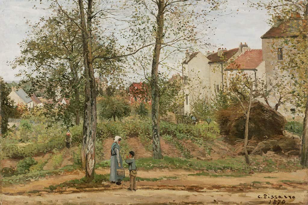 Huizen in Bougival Herfst, 1870, Olie op doek