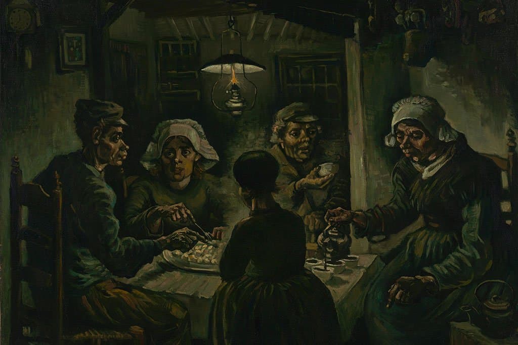 Van Goghschilderde dit werk in Nuenen. Daar is de boerenfamilie van Grote Rooij. Van Gogh wilde de hardheid en de eenvoud van het plattelandsleven laten zien. Dit werk is een van de beste kunsten uit het Van Gogh Museum. Er zijn verschillende schetsen en studies aan voorafgegaan.