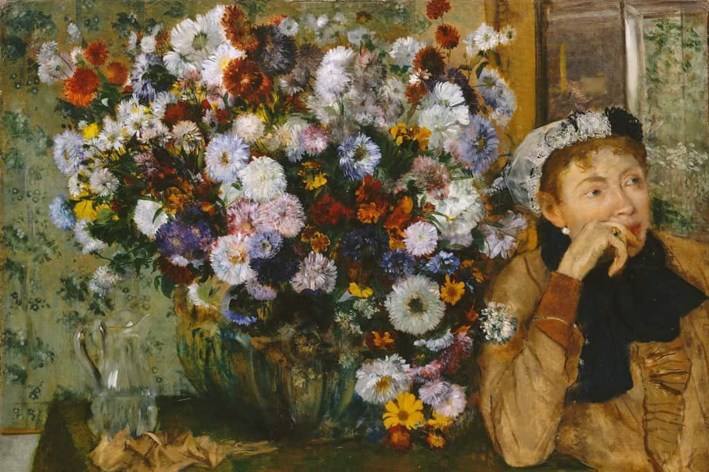 Een Vrouw Zittend naast een Vaas met bloemen Madame Paul Valpincon - Edgar Degas