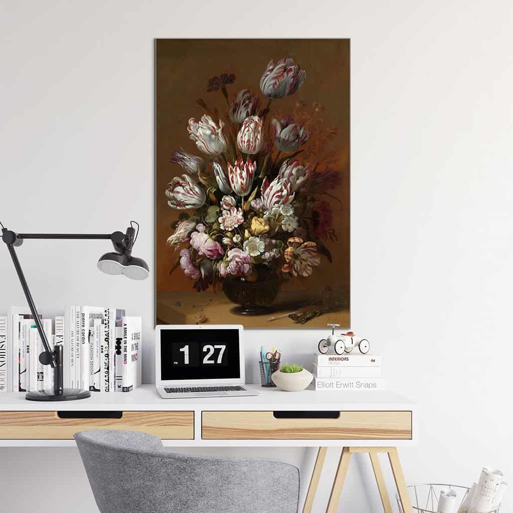 Dit bloemstilleven wordt een mooie decoratie voor uw eetkamerofVakantiehuis. Zie ook onze Oude meesterscollectie!