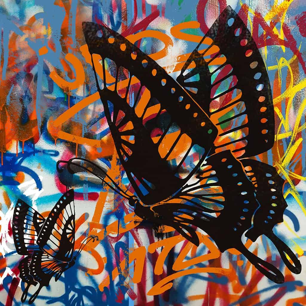 Tegenwoordig is de betekenis van het woord veranderd en betekent het meestal spuitkunst, zoals het beeld met inscripties en stencilvlinders.