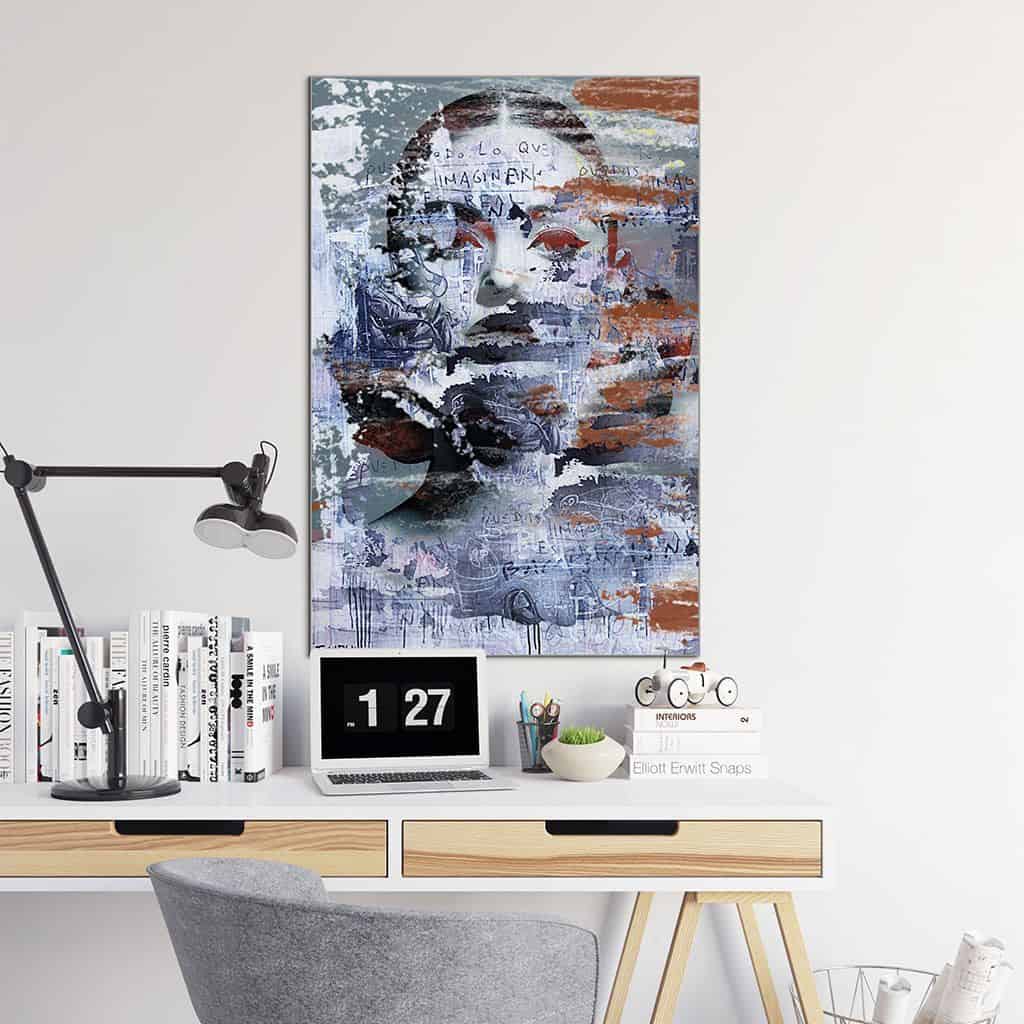 Achter deze verfstammen en krassen schuilt een portret van een mooie vrouw. ZijnPop Artkan een perfecte aanvulling zijn voor een loft-achtig interieur!