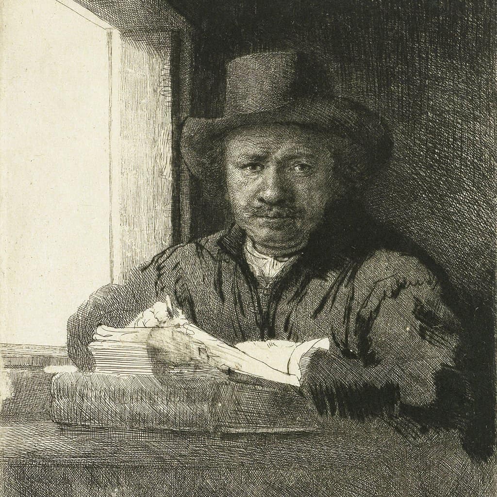 De verzonnen pose en het prachtige kostuum van de vroege zelfportretten zijn nergens in deze ets terug te vinden. Hier vindt u sporen van Rembrandts zorgen en verdriet in zijn gezicht. Op het moment dat deze ets werd gemaakt, vestigde de nieuwe minnares, Hendrikje Stoffels, zich in het huis van de kunstenaar na de dood van zijn vrouw Saskia. Dat bracht hem grote troost. Maar zijn populariteit als kunstenaar is afgenomen en zijn schulden zijn toegenomen.