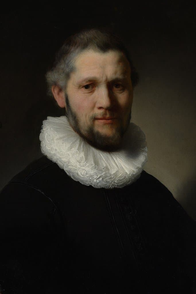 Dit portret van een 40-jarige man valt op door zijn kwaliteit en conditie. De subtiliteiten van licht en textuur in het ruwe gezicht en het vage haar, in de lagen van de kraag en zelfs in het zwarte kostuum.