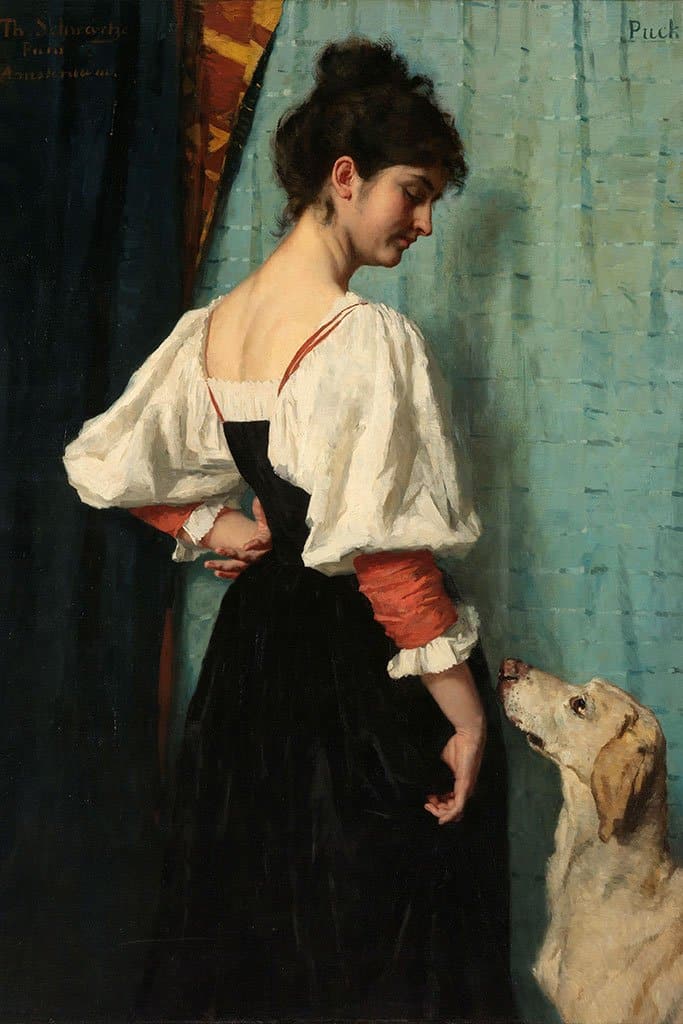 Portret van een jonge vrouw, met 'Puck' de Hond (Thérèse Schwartze)