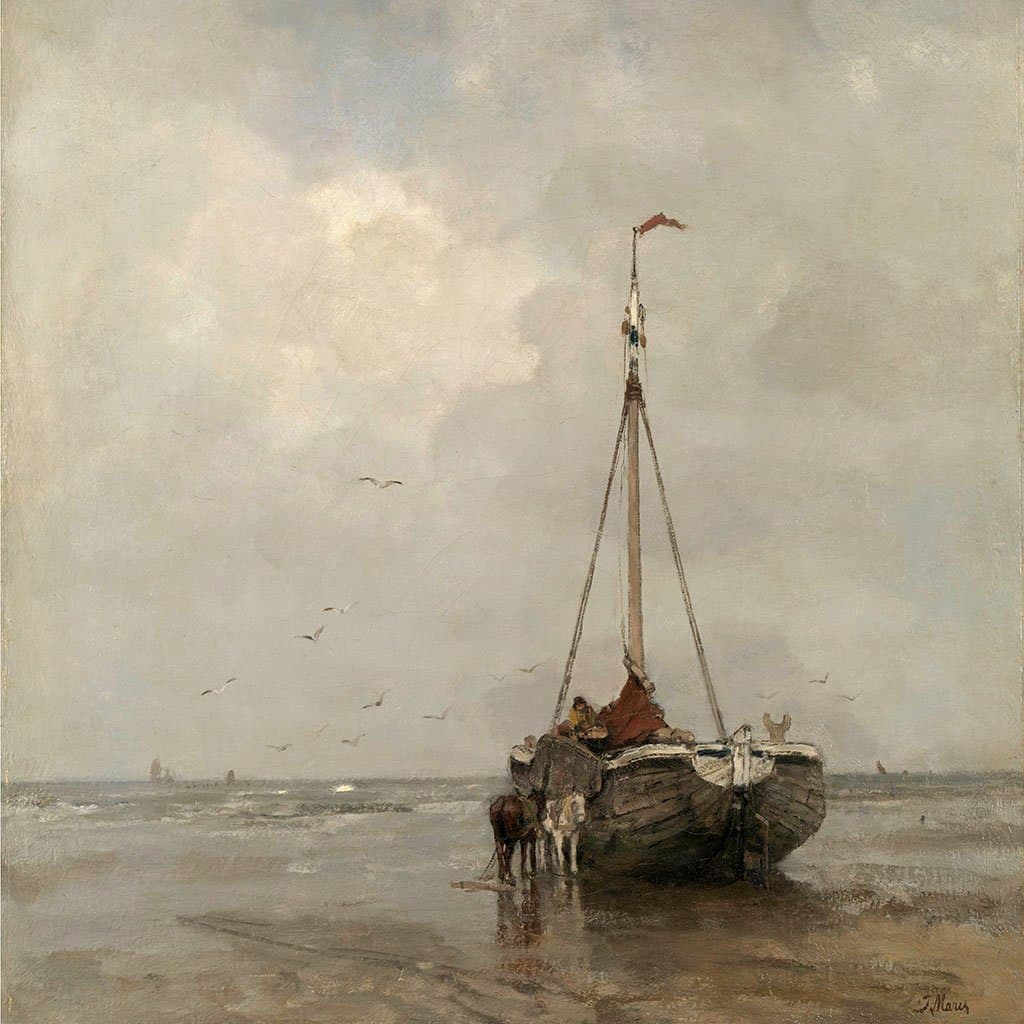 Jacob Mariswas een echte meester in het landschap. Vooral hij schilderde graag aan zee. Zestien keer schilderde Maris een vissersboot op zee. Het zijn studies van lucht en sfeer. Om de problemen te vermijden die veroorzaakt worden door de steeds veranderende lichtomstandigheden, werkte hij in zijn atelier.