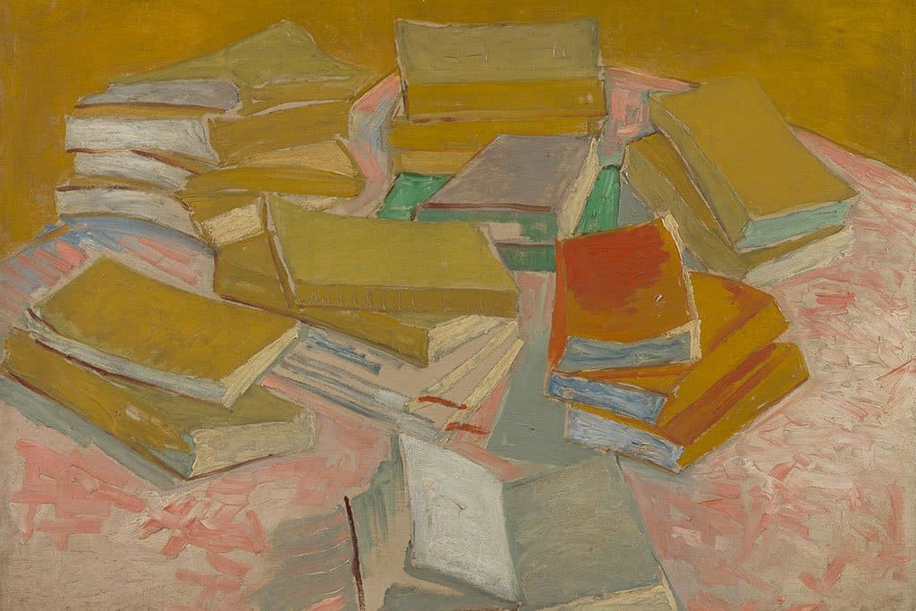 Hier is Van Goghs ode aan de moderne Franse literatuur. Het boek met gele omslag voor de 21ste eeuwse kijker is niet direct herkenbaar. Dit was moderne Franse paperbacks.