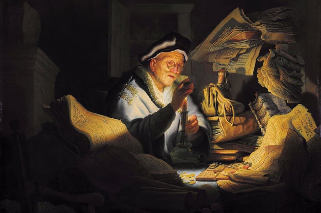 Het schilderij, ook bekend als "Geldwisselaar", wordt ook geïnterpreteerd als een allegorie van gierigheid. In het begin van de 17de eeuw werd een stapel boeken vaak gebruikt als symbool van ijdelheid.