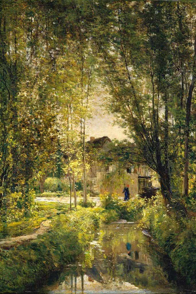 Landschap met een zonovergoten beekje, ca. 1877, Olie op doek