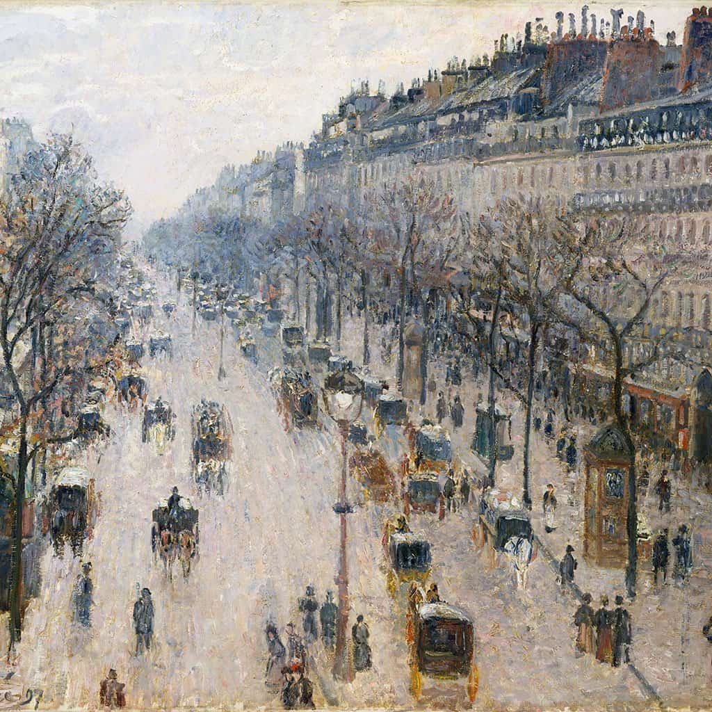Boulevard Montmartre op een winterochtend, 1897, Olie op doek