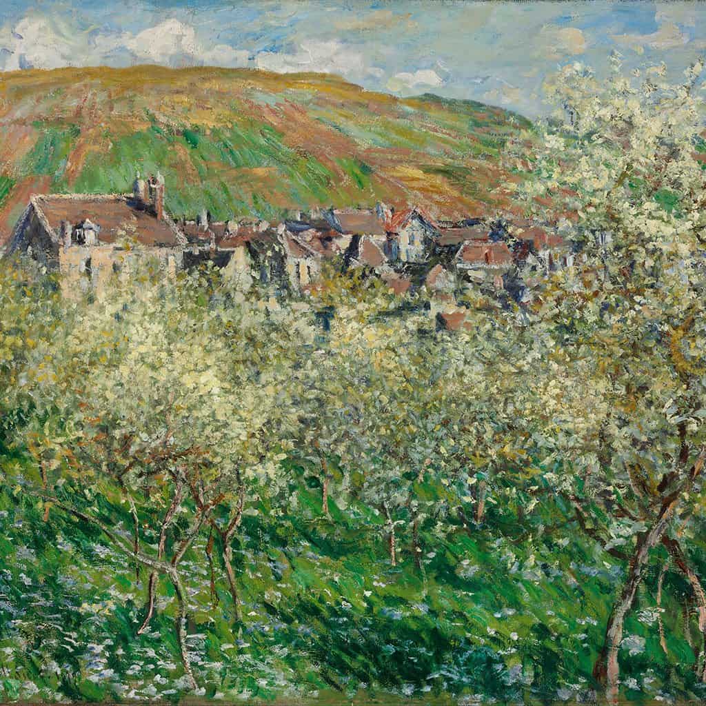 Pruimenbomen in bloesem, 1879, Olie op doek