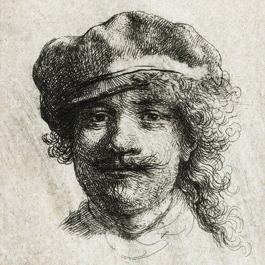 Rembrandt was ook een groot liefhebber van zelfportretten! Hij is waarschijnlijk de enige schilder die ooit zoveel egoïsten heeft gemaakt. Dit is een van de etsen van de kunstenaar die hem in een petje toont.