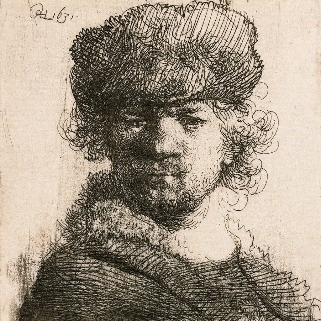 Rembrandt was ook een groot liefhebber van zelfportretten! Er zijn geen kunstenaars die zichzelf zo vaak voor Rembrandt hebben afgebeeld. Dit is een van de etsen van de meester die hem in een bontmuts voorstelt.