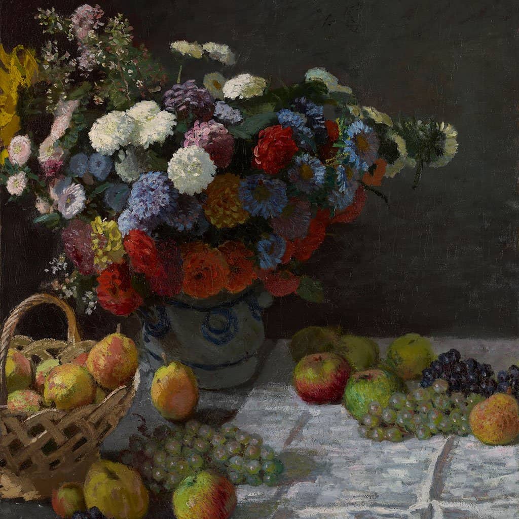Stilleven met bloemen en fruit, 1869, Olie op doek