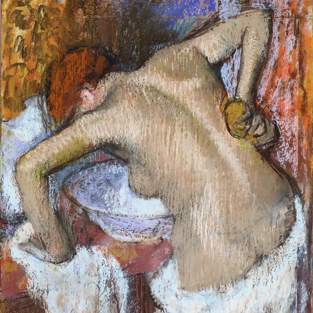 Vrouw die haar rug sponst, c. 1888 – 92, Pastel op papier gemonteerd op karton