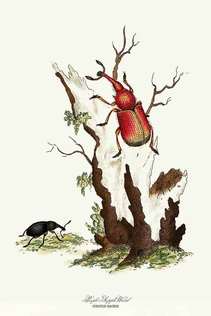 De paarse appelkever (Curculio Bachus) was een van de meest destructieve appelplagen voor de komst van insecticiden. Gelukkig zijn de insecten niet meer zo'n grote ramp voor appelbomen.