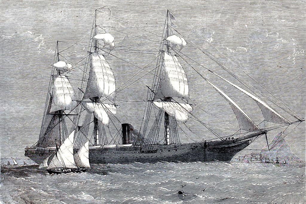 HMS Himalayamet Armstrong Guns naar de Tweede Opiumoorlog, 1860, uit het geïllustreerde London News.