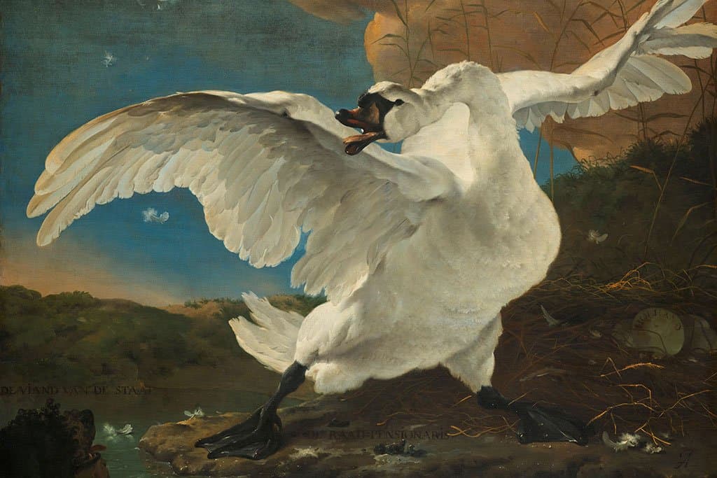 Het schilderij werd in latere eeuwen politiek geïnterpreteerd: de witte zwaan werd het beeld voor de in 1672 vermoorde staatsman Johan de Witt, die het land verdedigde tegen zijn vijanden en dit met zijn leven moest bekopen.