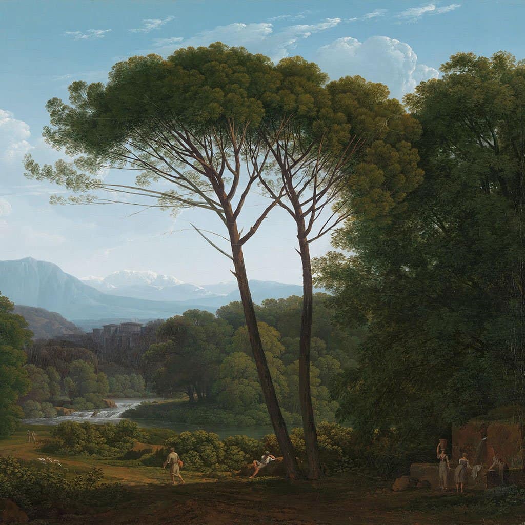 Hendrik Voogd ging in 1788 met steun van een Amsterdamse beschermheilige naar Rome. Hij sloot zich aan bij de internationale kunstenaarskolonie. Dit schilderij toont een prachtig parklandschap rond Rome vol oude overblijfselen, geschilderd in een koel en helder licht.