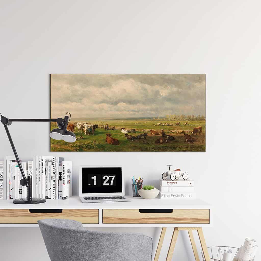 In tegenstelling tot de romantische schilders hadden de kunstenaars van de Haagse School oog voor de schoonheid van de polder. Ze schilderden groene weiden met een brede horizon, waar koeien nog steeds herkauwen. Deze werken werden zeer gewaardeerd en gaven aanleiding tot het beeld van Nederland als een groen, vlak polderlandschap onder een grijsblauwe lucht.