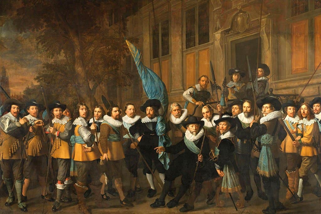 Hier is een van zijn groepsportretten. De volledige naam is "Officieren en andere burgerwachters van het IVe arrondissement Amsterdam, onder het bevel van kapitein Jan Claesz van Vlooswijck en luitenant Gerrit Hudde".