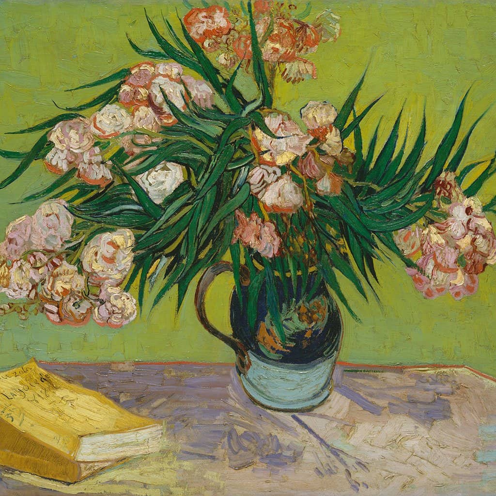Dan weet je het waarschijnlijk wel en ben je dol op dit schilderij. Vincent Van Goghs "Oleanders" betoveren de kijker met een prachtige combinatie van kleuren. Hij maakte het in 1888.