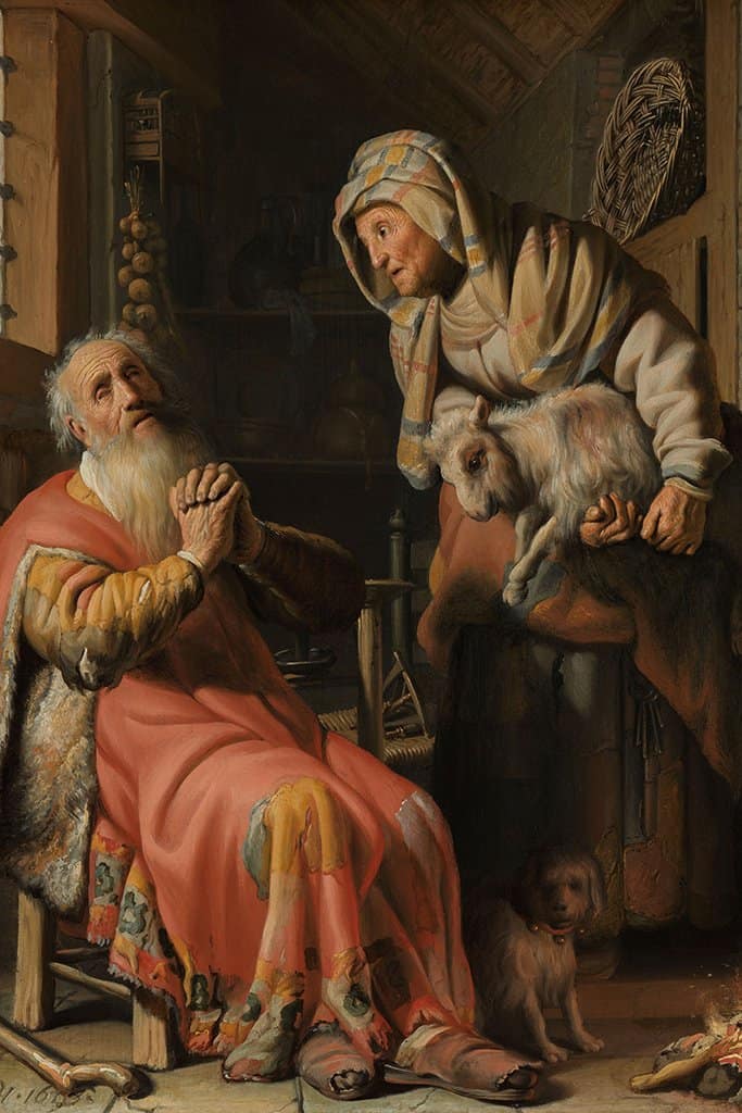 "Tobit beschuldigt Anna van het stelen van de Kid" dateert van kort nadat Rembrandt een zelfstandige kunstenaar in Leiden werd. Het object is afkomstig uit het Tobit Apocryphal Book.