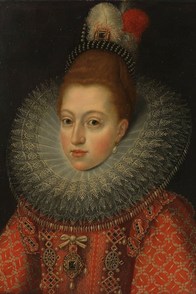 Portret van Margaretha van Oostenrijk, echtgenote van Filips III door Frans Pourbus Atelier. Frans was een belangrijke portrettist in de ontwikkeling van de Nederlandse portretschilderkunst in een periode die van de Renaissance tot de 17de-eeuwse barokperiode is overgegaan.