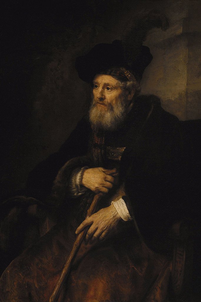 Rembrandt richtte zich in dit schilderij op het onderwerp ouderdom. De identiteit van de man op het schilderij is echter onbekend. Het rijke kostuum dat hij draagt geeft geen idee van het beroep of de sociale status van de oude man.