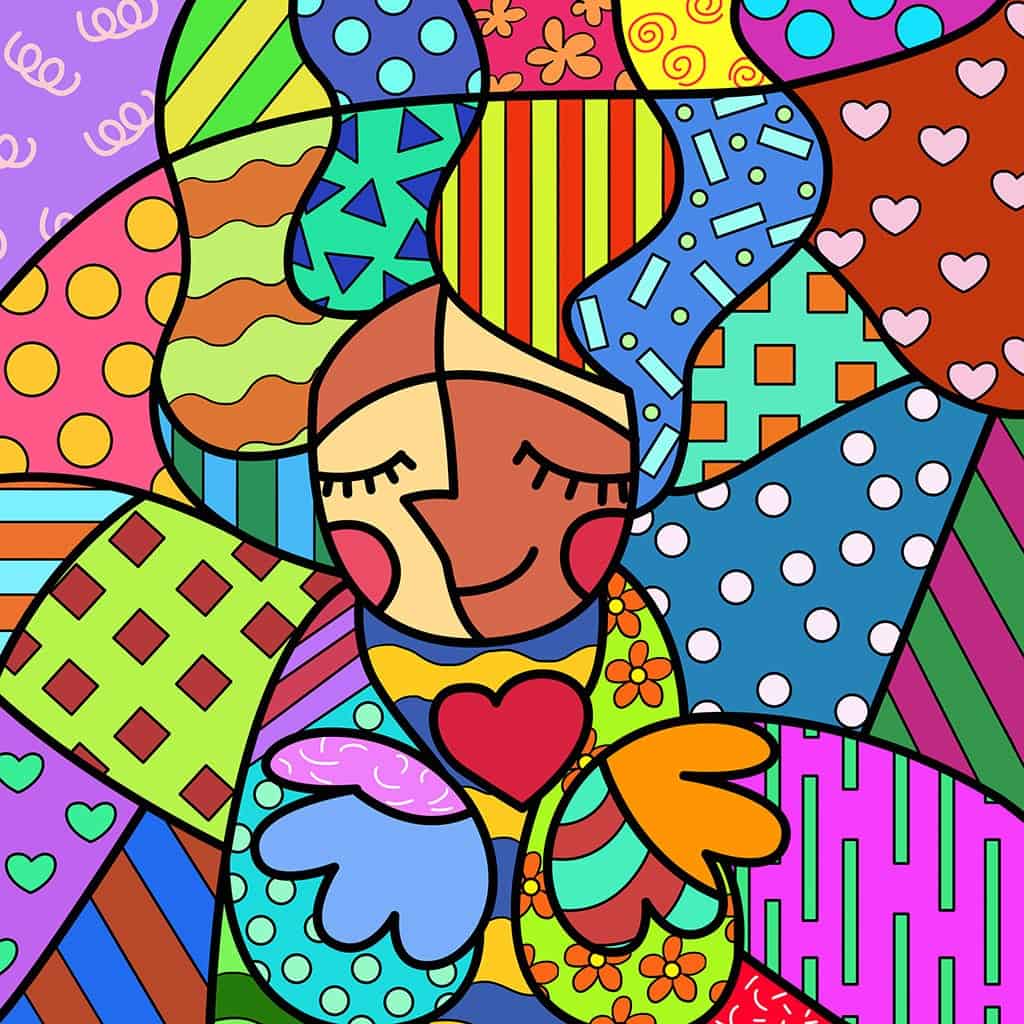 Deze schattige en kleurrijke kunstprent toont een figuratief meisje met een hart in haar handen. Iedereen heeft altijd iemand nodig om van te houden.